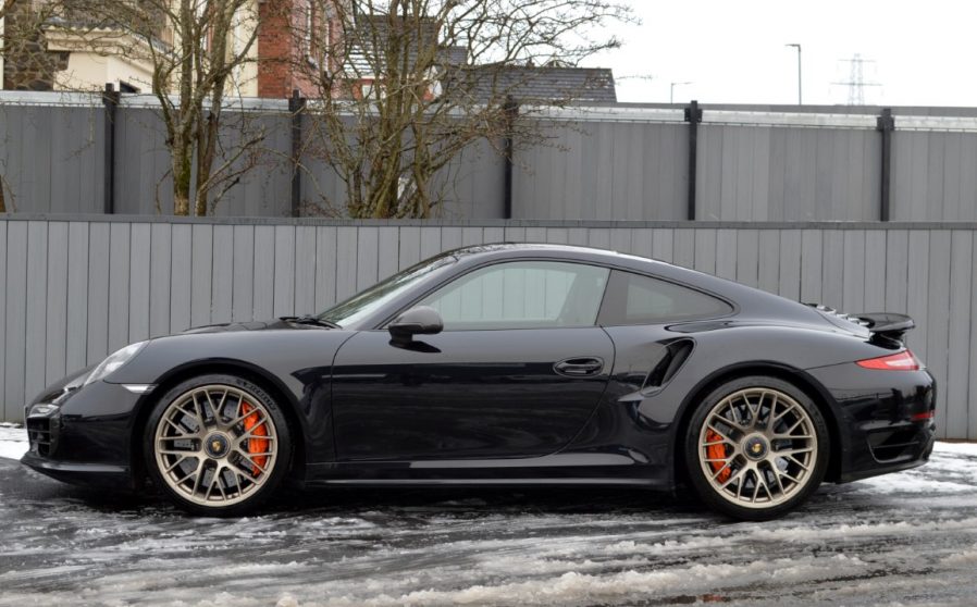 2015 /65 Porsche 911 3.8T 991 Turbo S PDK, Jet black metallic with black leather upholstery, Carbon interior decorative inserts, Black Alcantara roof lining, Sliding glass roof, Burmeister premium audio, Sport Chrono plus dial/speedo finished in Carrara white, Adaptive cruise, Porsche entry and drive, LED headlights in black with PDLS plus, Reverse camera with park assist front/rear, Porsche Crest to seats, Porsche Crest armrest, Sports Plus heated seats, 911 Turbo S Wheels, Carbon Ceramic brakes, Garage door opener, Pained side skirts and air vents, Sport wheel with paddle shift and more. 48774 miles including recent service at Porsche. Includes 1 years warranty. Phone for further details and to arrange viewing.